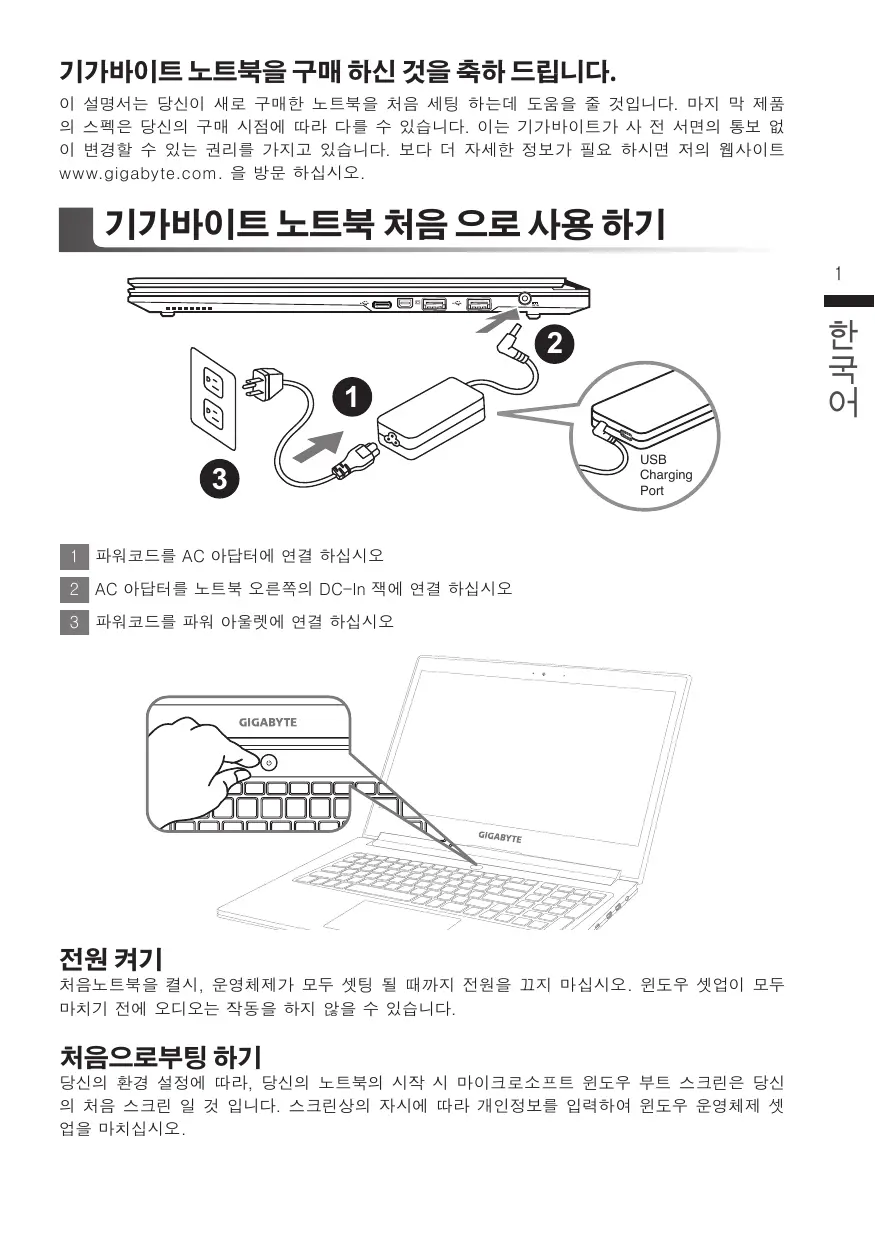기가바이트 노트북 처음 으로 사용 하기