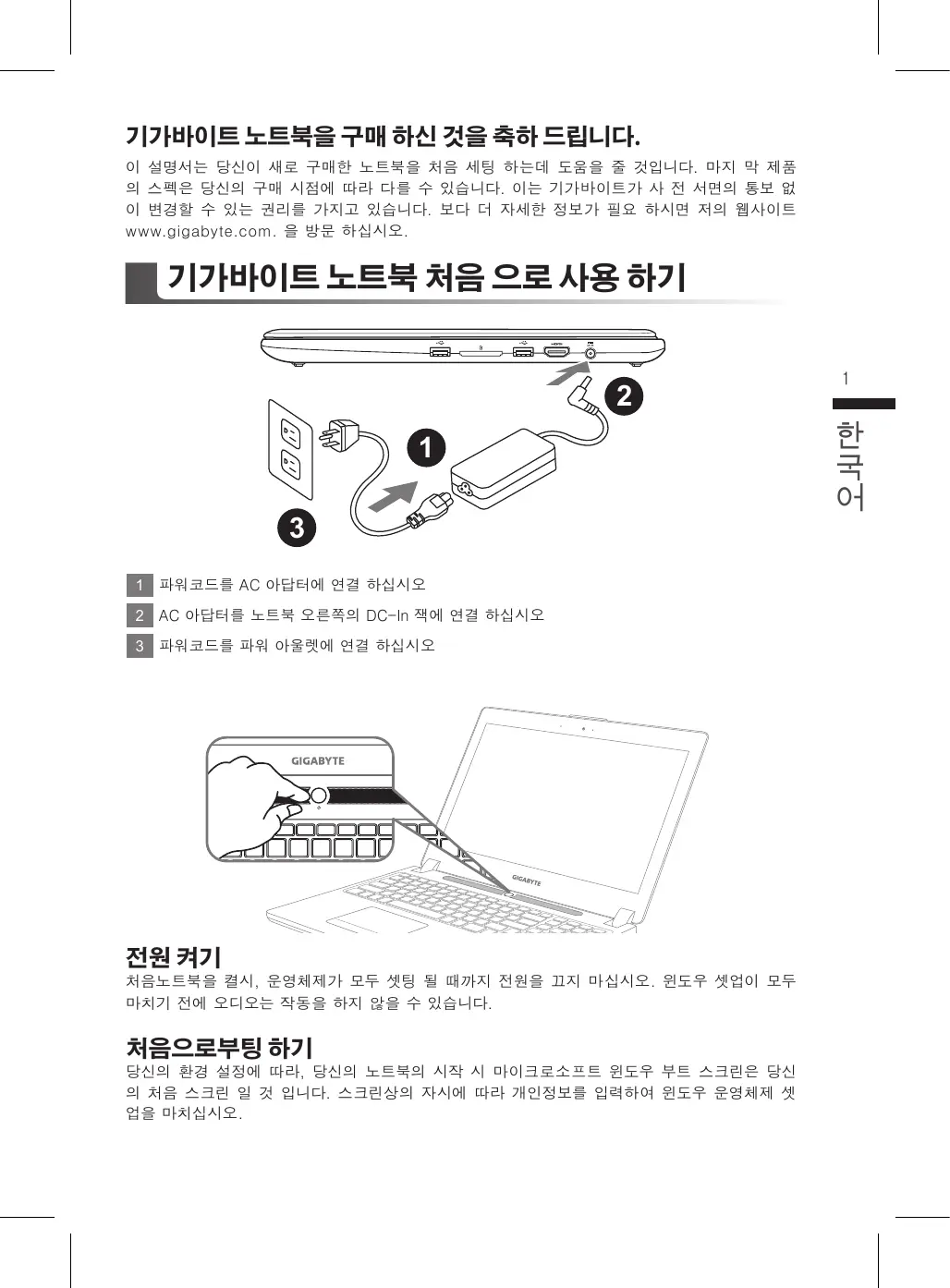 기가바이트 노트북 처음 으로 사용 하기