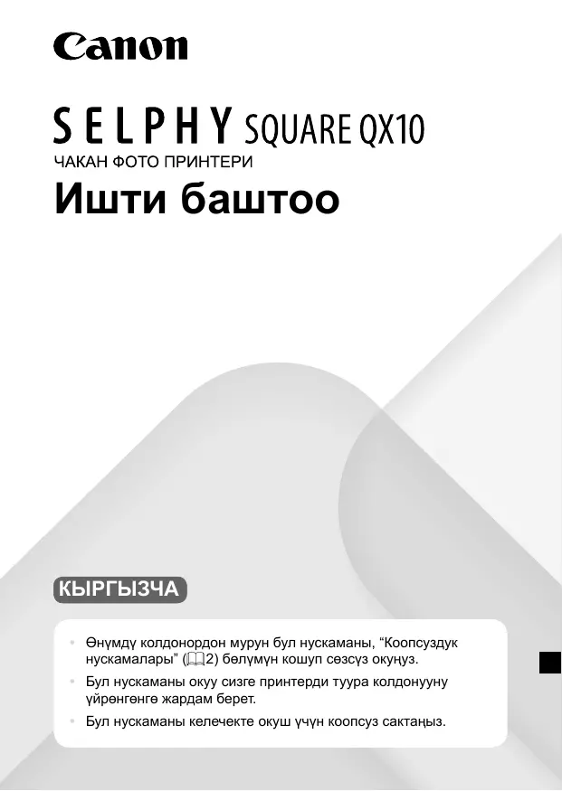 Téléchargez la notice de votre фото принтер au format PDF gratuitement ! Retrouvez votre notice SELPHYSQUARE QX10S - CANON et reprennez votre appareil électronique en main. Sur cette page sont publiés tous les documents nécessaires à l'utilisation de votre appareil SELPHYSQUARE QX10S de la marque CANON.