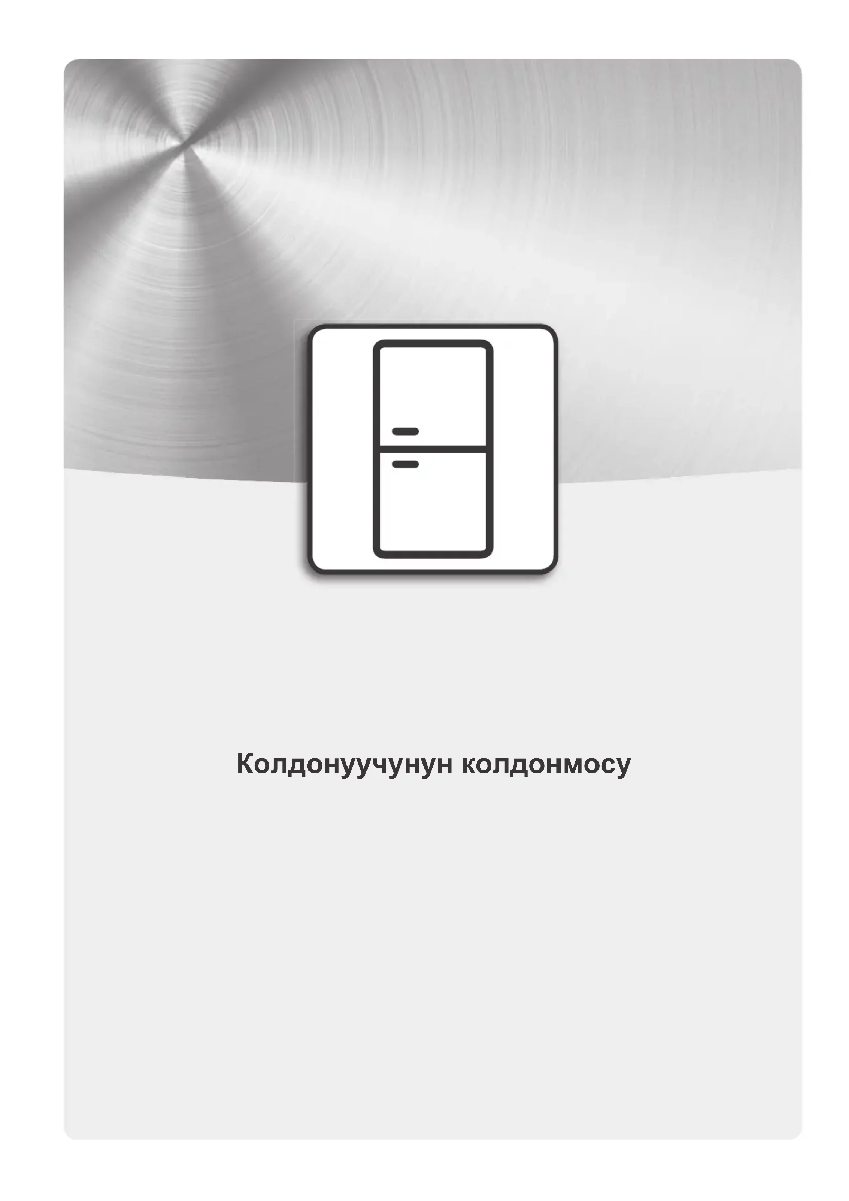 Куйкаланган эт (уй-чочко-козу эти) Стейктер же кесилген эт (уй-козу-чочко эти) 1 ай 2 ай 8-12 ай 4 ай 12 ай Сүт, жаңы жасалган суусундуктар, быштак, балмуздак же шербет 1 ай 1-3 ай 5 ай (балмуздак үчүн сунушталбайт) Канаттуулардын эти (тоок-индюк эти) 1 ай 5-7 ай 9 ай ЖАЛПЫ БӨЛҮМ Өнүм Сактоо мөөнөтү 0-3°C Сактоо мөөнөтү (3-6°C) Сактоо мөөнөтү 6-8°C Консервалар, ичимдиктер, жумуртка, соус, туздалган бадыраң, май, джем 3-4 жума 3-4 жума 3-4 жума Тропикалык жемиштер Сунушталбайт 2-4 жума 3-4 жума быштак, сүт, сүт азыктары, каймак 2-5 күн 2-5 күн 2-5 күн Муздак эт кесиндилери, таттуулар, эт жана балык, үйдө бышырылган тамак 3-5 күн 1-2 күн Сунушталбайт Жашылча-жемиштерди сактоо (тропикалык жана цитрус жемиштеринен башка) 15 күн 10-12 күн 4-7 күн6 Колдонуу жана Кам көрүү колдонмосу Тоңдургуч бѳлүктү кантип эритүү керек 1 Тамак-ашты тоңдургуч бөлүмүнөн чыгарганга чейин Fast Freeze/Fast Cool* (Тез тоңдуруу/Тез муздатуу) режимин төрт саатка күйгүзүү сунушталат, ал эритүү фазасында тамак-ашты сактоого жардам берет. 2 Эритүү үчүн жабдууну ѳчүрүӊүз жана суурма үкѳктѳрдү алып салыӊыз. Тоӊдурулган тамак-ашты муздак жерге коюуӊуз. Муздун эрүүсүнѳ мүмүкүндүк берүү үчүн эшикти ачып салыӊыз. Эритүү учурунда суу чыгып кетпеши үчүн тоӊдургуч бѳлүктүн астына суу жакшы соро турган чүпүрѳктү коюу жана аны үзгүлтүксүз сыгып туруу сунушталат. 3 Тоӊдургуч бѳлүктүн ичин тазалаӊыз жана аны кылдаттык менен кургатыӊыз. 4 Жабдууну кайра иштетиӊиз жана тамак-ашты ичине кайра салыӊыз. Функционалдык үндөр 1 Шайман иштеп жатканда компрессордон чыккан үн демейдеги көрүнүш. 2 Хладаген муздаткыч контурунда жылганда күркүлдөгөн добуш угулат. Бул адаттагыдай көрүнүш. 3 Компрессор иштеп же иштебей жатканда кыйчылдаган добуш чыгышы мүмкүн: бул шаймандын структурасынын адаттагыдай добушу. 4 Мүмкүн болгон вибрациялардын алдын алуу үчүн муздаткыч эшиктин ичиндеги бөлүмдөр, муздаткыч бөлүмдөгү текчелер жана суурмалар туура салынганын жана коюлганын текшериңиз. 5 Вибрацияны алдын алууга айнек контейнерлерди (бөтөлкөлөрдү, банкаларды, жана башкаларды) бир бирине тийгизип койбогула. 6 Бул шайман компрессор менен жабдылган. Ал оптималдуу ылдамдыкты иштеп электр энергияны сарптоосун азайтат. Кээ бир ситуацияларда (жайында же эгерде тамактын көп көлөмү салынганда) компрессор ылдамдыгын көбөйтөт жана ошондуктан ал көбүрөөк үн чыгарышы мүмкүн. Эгер шайман колдонулбаса, ага карай сунуштамалар Шайманды колдонбогон учурда Жабдууну электр тогунан ажыратыӊыз, бошотуӊуз, эритиӊиз (керек болсо) жана тазалаӊыз. Бѳлүктүн ичинде абанын айланышы үчүн эшикти кичине ачык кармаӊыз. Муну кылуу менен сиз кѳк жана жаман жыттын ѳрчүшүн болтурбайсыз. Электр тогу токтотулган учурда Тамак-аштын болушунча кѳп убакытка чейин муздак турушу үчүн эшикти жабык кармаӊыз. Жарым-жартылай эритилген тамак-ашты кайра тоӊдурбаӊыз. Эгерде кѳп убакытка чейин ток болбосо, электр тогу ѳчүктүгүн билдирген сигнализациясы дагы автивдештирилиши мүмкүн (электроника продукцияларында).KI