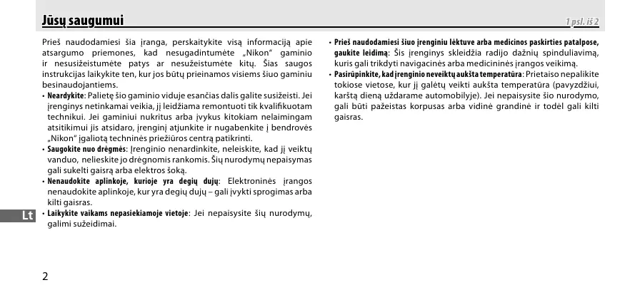 To prevent damage to your Nikon product or injury to yourself or to others, read the following safety precautions in their entirety before using this equipment. Keep these safety instructions where all those who use the product will read them.