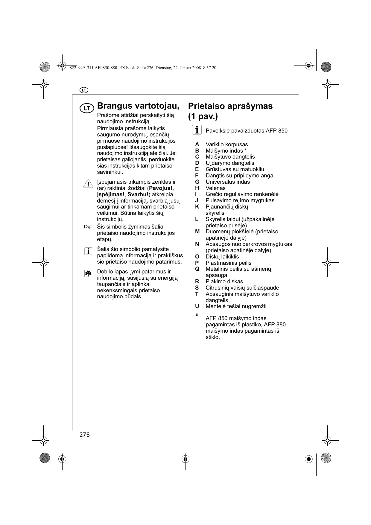 AFP850 - Virtuvinis kombainas AEG-ELECTROLUX - Nemokama naudojimo instrukcija