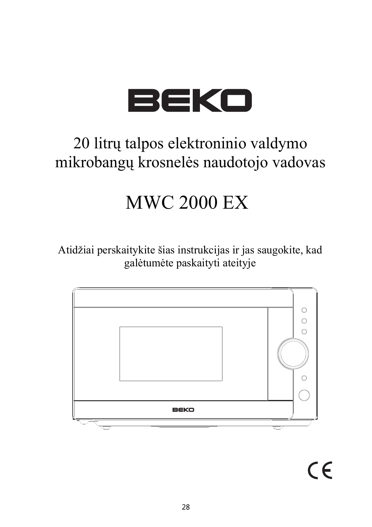 20 litr talpos elektroninio valdymo mikrobang krosnels naudotojo vadovas MWC 2000 EX Atidžiai perskaitykite šias instrukcijas ir jas saugokite, kad galtumte paskaityti ateityje