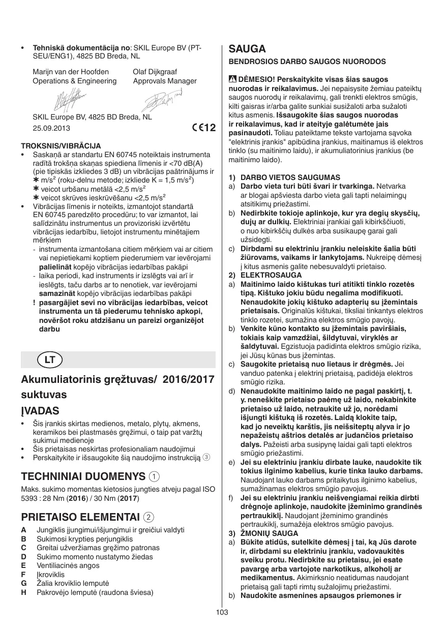 Téléchargez la notice de votre Elektrinis įrankis au format PDF gratuitement ! Retrouvez votre notice F015 - SKIL et reprennez votre appareil électronique en main. Sur cette page sont publiés tous les documents nécessaires à l'utilisation de votre appareil F015 de la marque SKIL.