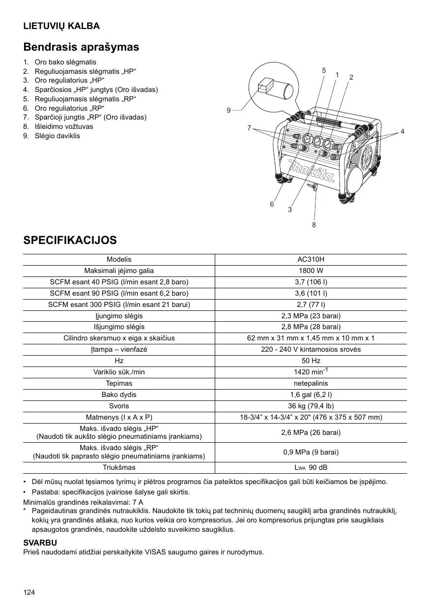NAUDOJIMO INSTRUKCIJA AC310H MAKITA