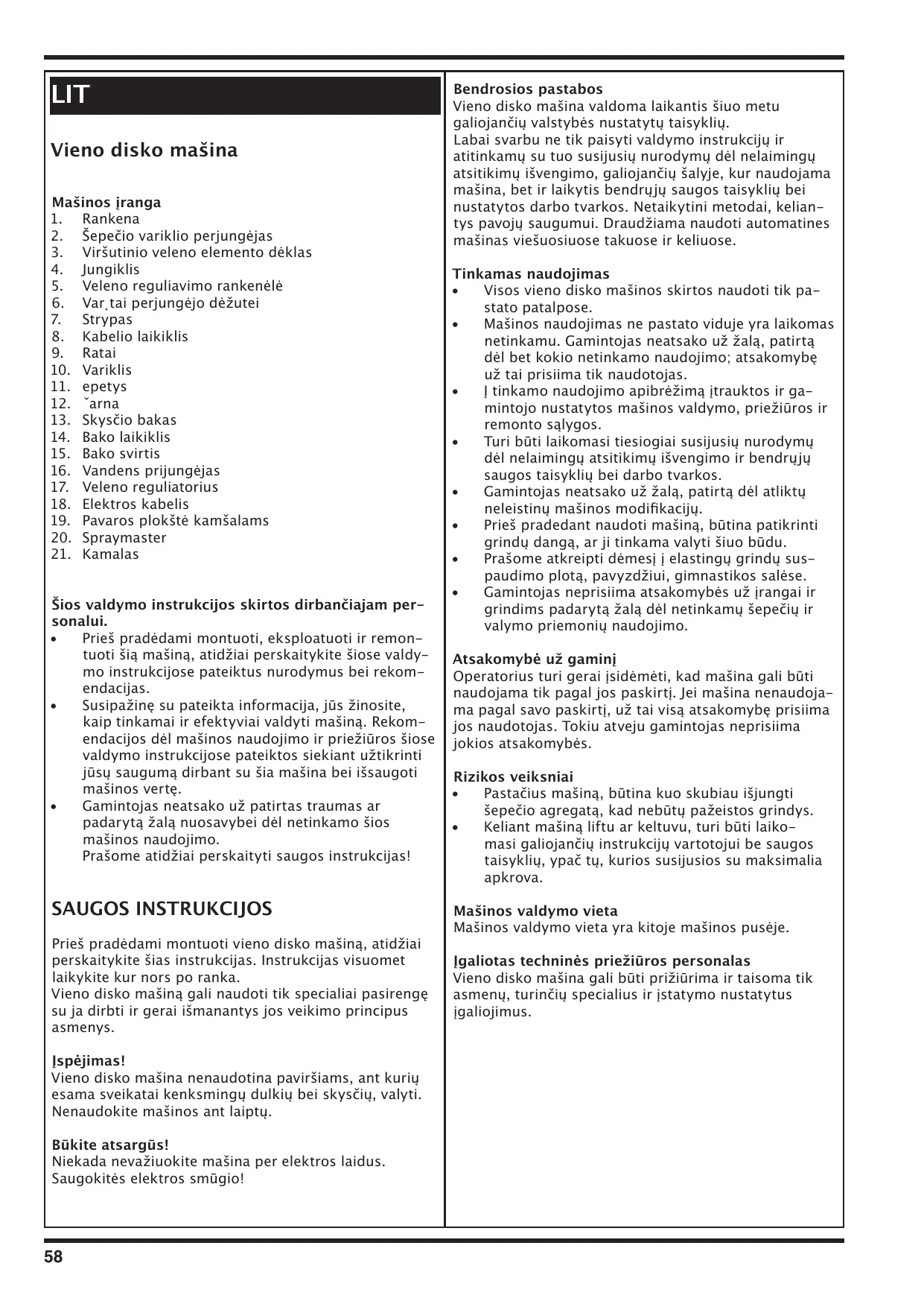 La máquina monodisco no es apropiada para el tratamiento de superficies de las cuales se pueden desprender polvos y líquidos peligrosos para la salud. No pasar por encima de escalones! El puesto de trabajo se encuentra detrás de la máquina.