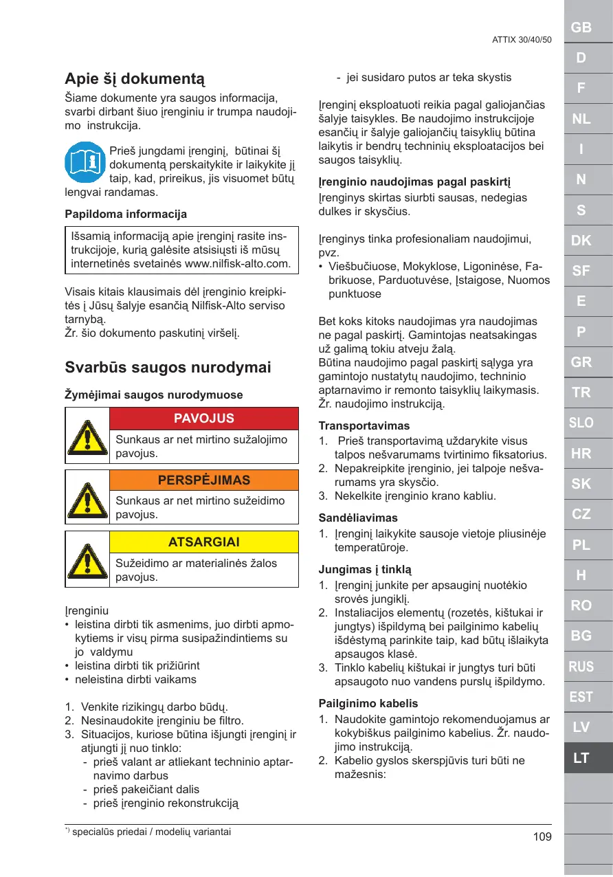 Retrouvez gratuitement la notice de l'appareil ATTIX 30 BATT NILFISK au format PDF.