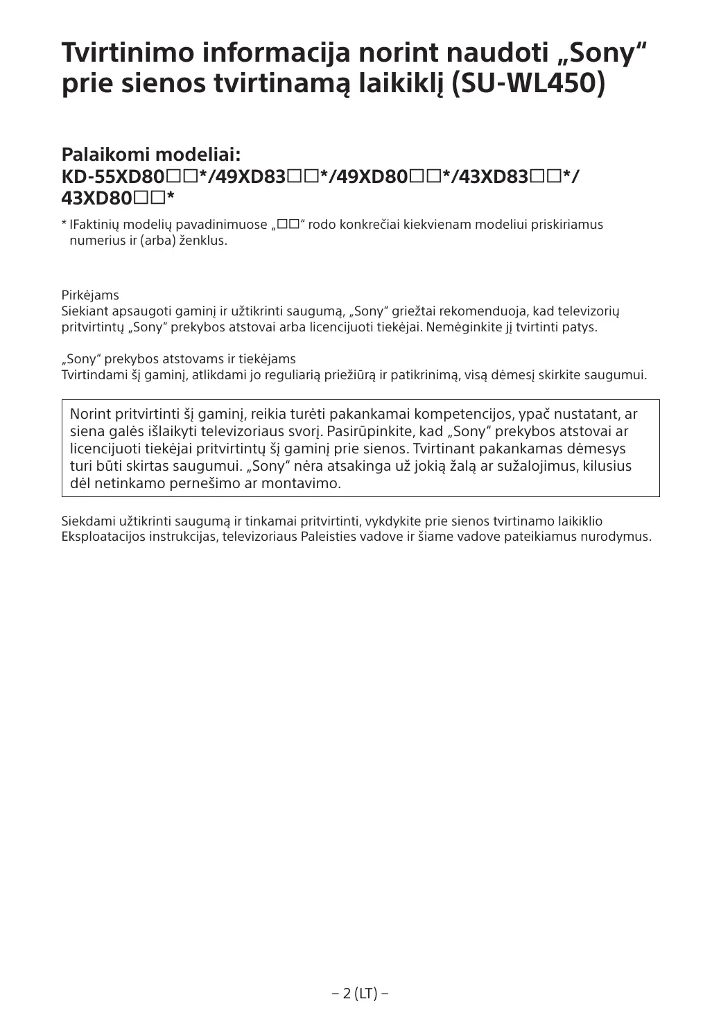 Téléchargez la notice de votre Televizorius au format PDF gratuitement ! Retrouvez votre notice KD49X8005 - SONY et reprennez votre appareil électronique en main. Sur cette page sont publiés tous les documents nécessaires à l'utilisation de votre appareil KD49X8005 de la marque SONY.
