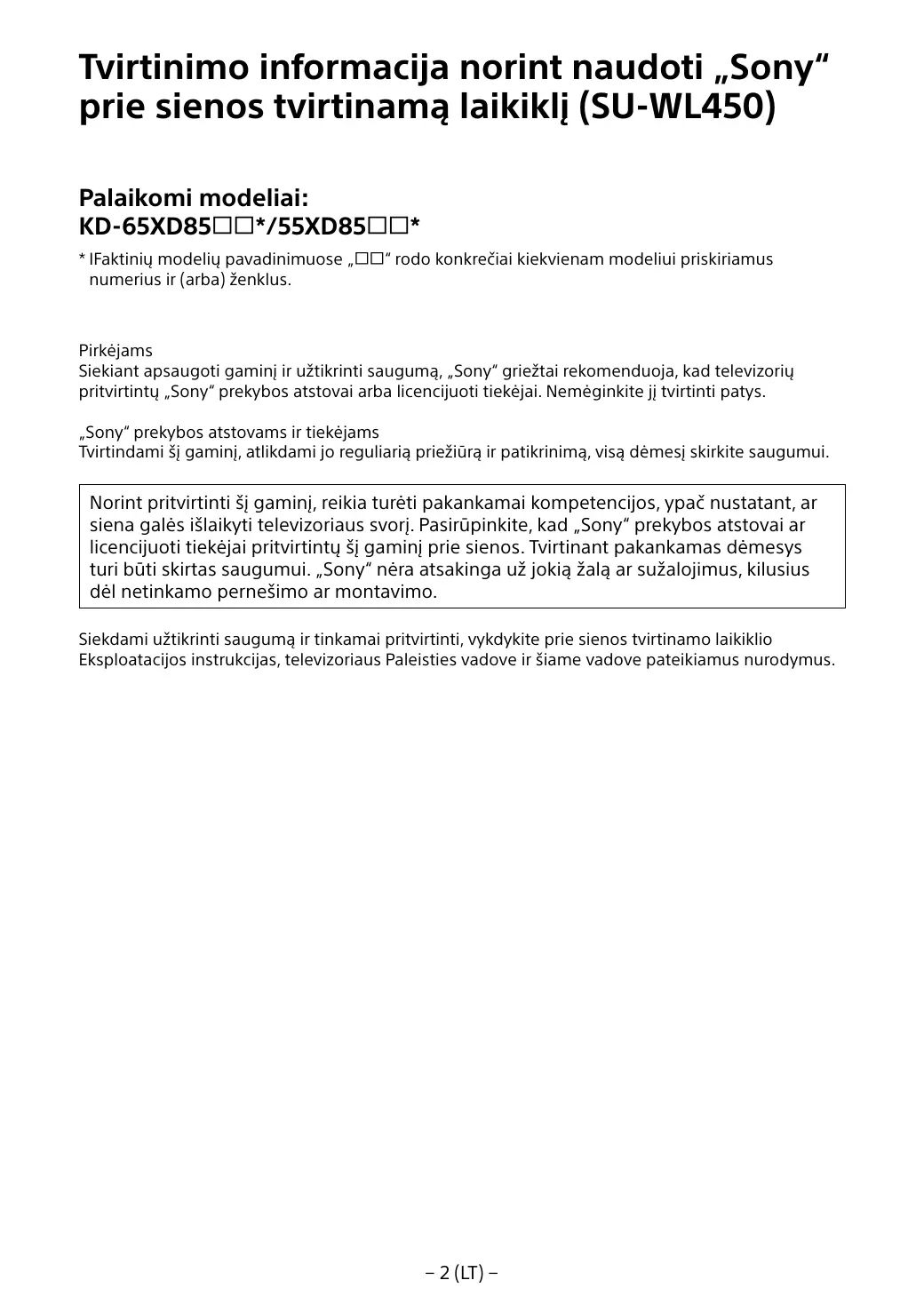 Téléchargez la notice de votre Televizorius au format PDF gratuitement ! Retrouvez votre notice KD65XD8505B - SONY et reprennez votre appareil électronique en main. Sur cette page sont publiés tous les documents nécessaires à l'utilisation de votre appareil KD65XD8505B de la marque SONY.