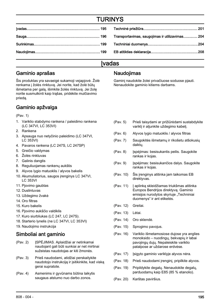 Téléchargez la notice de votre žoliapjovė au format PDF gratuitement ! Retrouvez votre notice LC 247S - HUSQVARNA et reprennez votre appareil électronique en main. Sur cette page sont publiés tous les documents nécessaires à l'utilisation de votre appareil LC 247S de la marque HUSQVARNA.