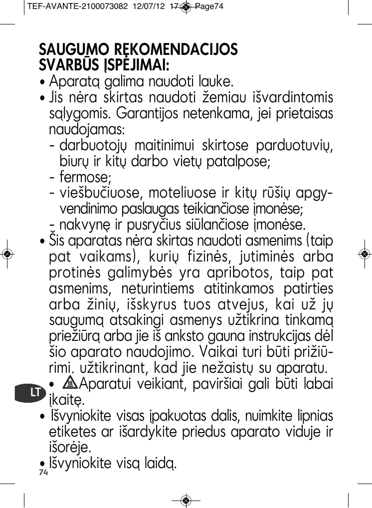 Téléchargez la notice de votre Racletės aparatas au format PDF gratuitement ! Retrouvez votre notice SW606812 - TEFAL et reprennez votre appareil électronique en main. Sur cette page sont publiés tous les documents nécessaires à l'utilisation de votre appareil SW606812 de la marque TEFAL.