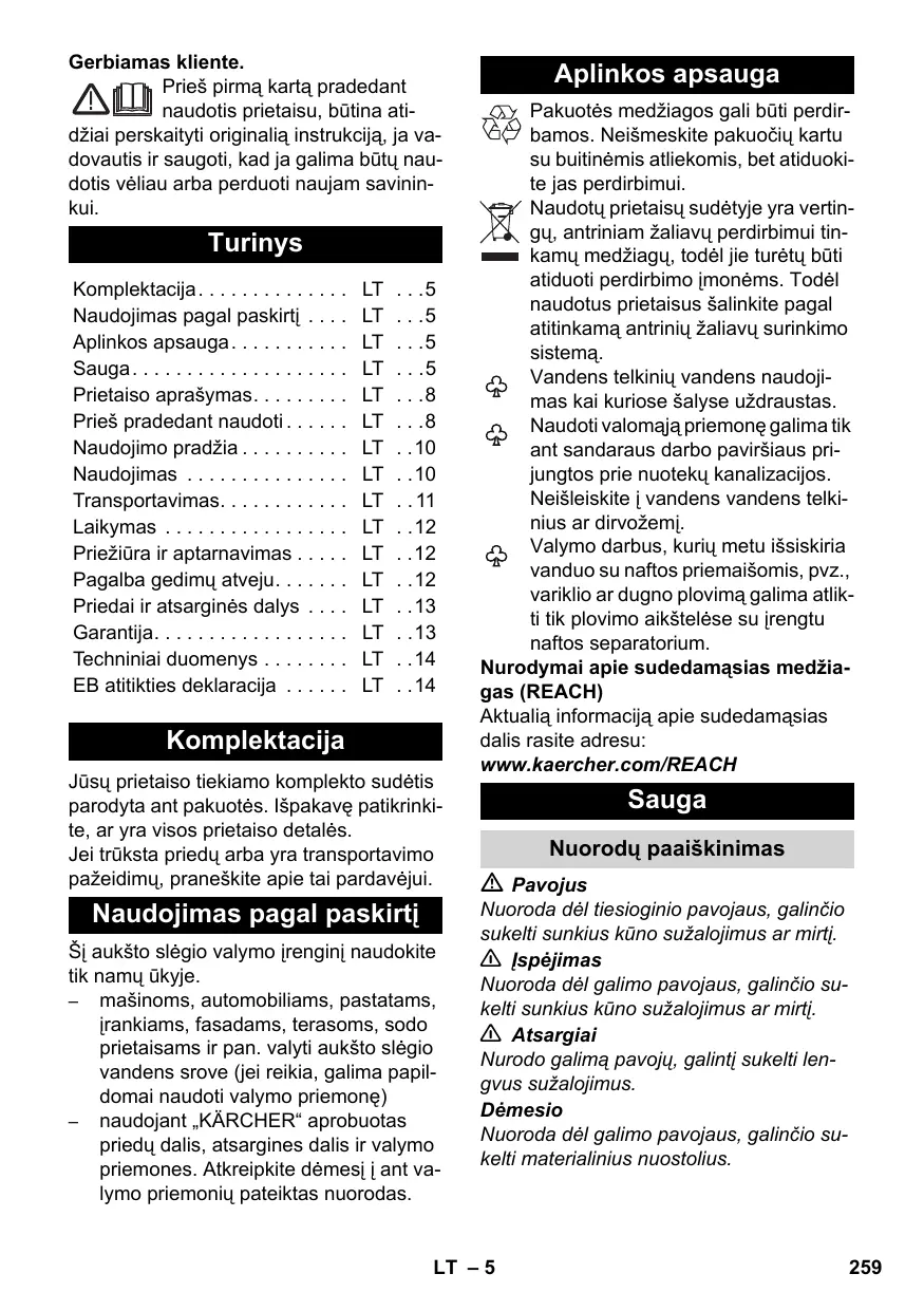 Téléchargez la notice de votre Dulkių siurblys au format PDF gratuitement ! Retrouvez votre notice VC3 PREMIUM - KARCHER et reprennez votre appareil électronique en main. Sur cette page sont publiés tous les documents nécessaires à l'utilisation de votre appareil VC3 PREMIUM de la marque KARCHER.