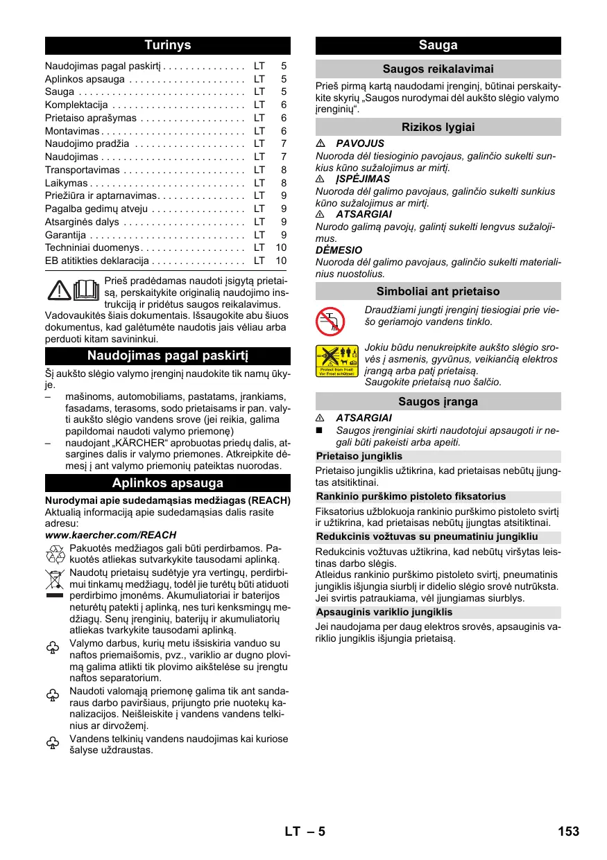 Enne selle seadme esimest kasutamist lugege kindlasti läbi juuresolevad „Kõrgsurvepesuri ohutusnõuded“.