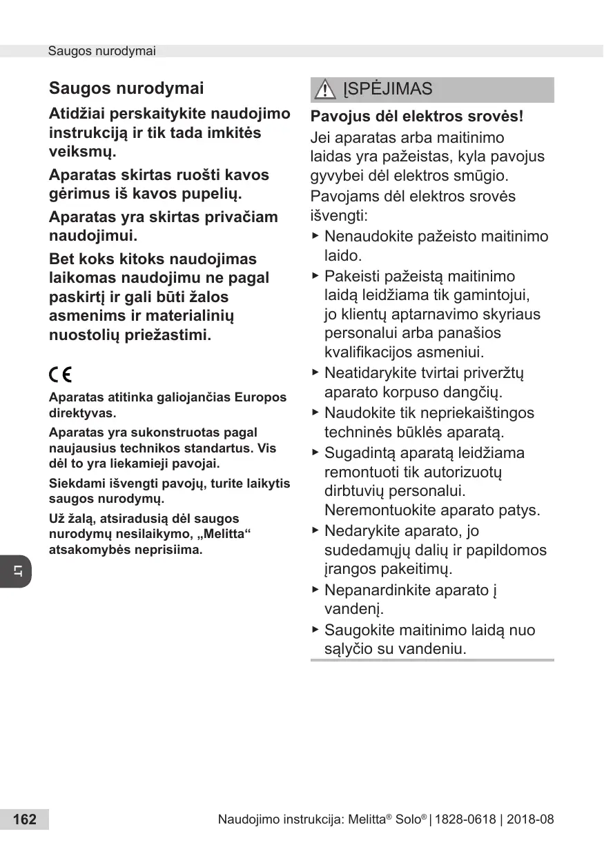 SOLO - Kavos aparatas MELITTA - Notice d'utilisation et mode d'emploi gratuit
