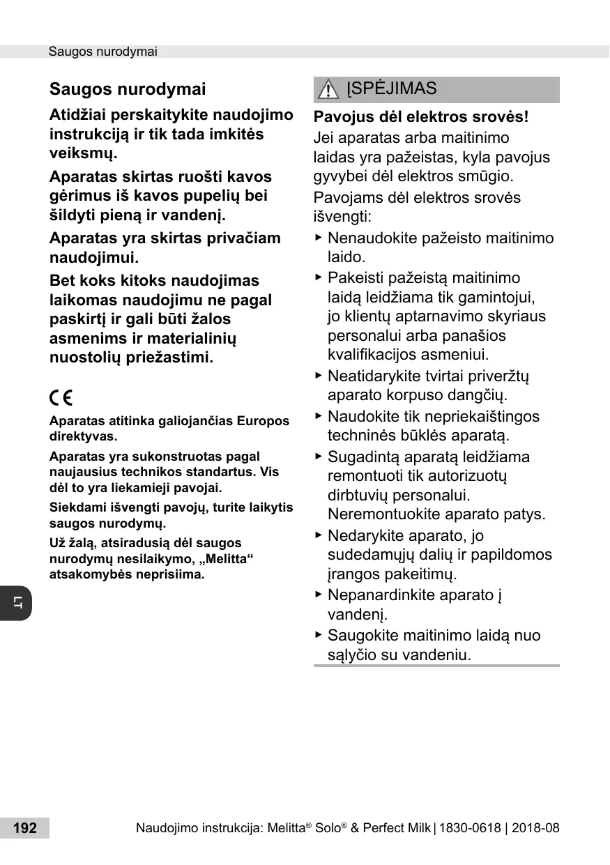 Gebruiksaanwijzing: Melitta® Solo® & Perfect Milk | 1830-0618 | 2018-08