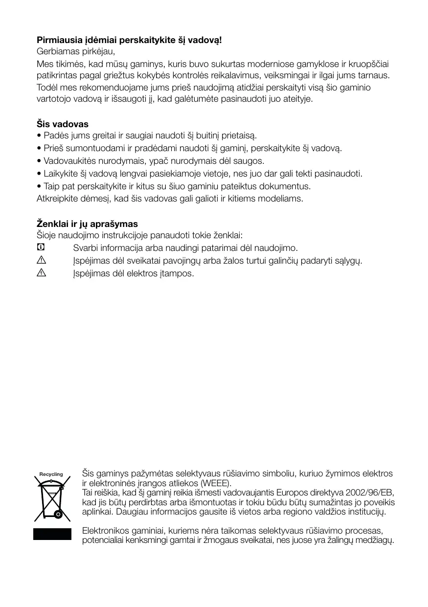 Chaque matériau recyclé est une participation indispensable à la préservation de la nature et conservation de nos ressources nationales. Si vous souhaitez contribuer à recycler les matériaux d’emballage, vous pouvez obtenir des informations supplémentaires auprès des organismes environnementaux ou des autorités locales.