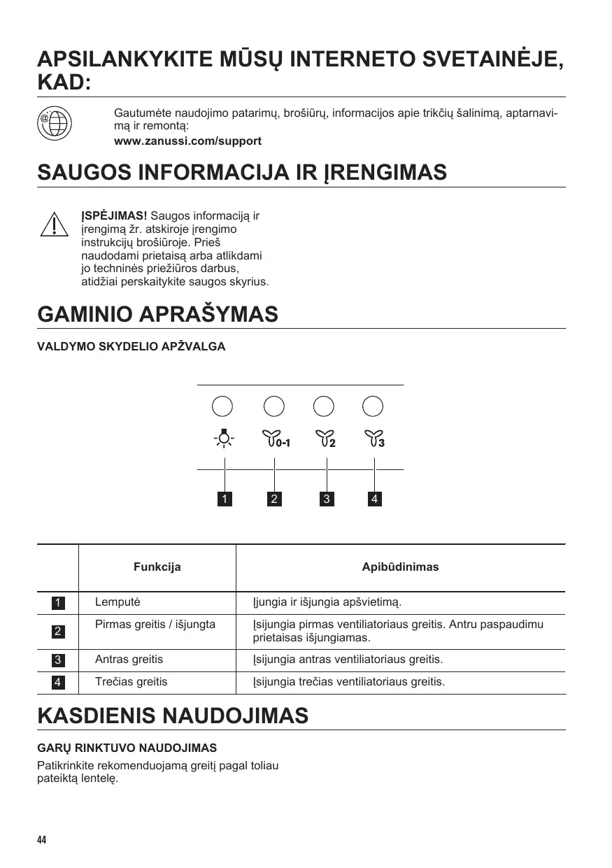 APSILANKYKITE MŪSŲ INTERNETO SVETAINĖJE, KAD: Gautumėte naudojimo patarimų, brošiūrų, informacijos apie trikčių šalinimą, aptarnavi‐ mą ir remontą: www.zanussi.com/support