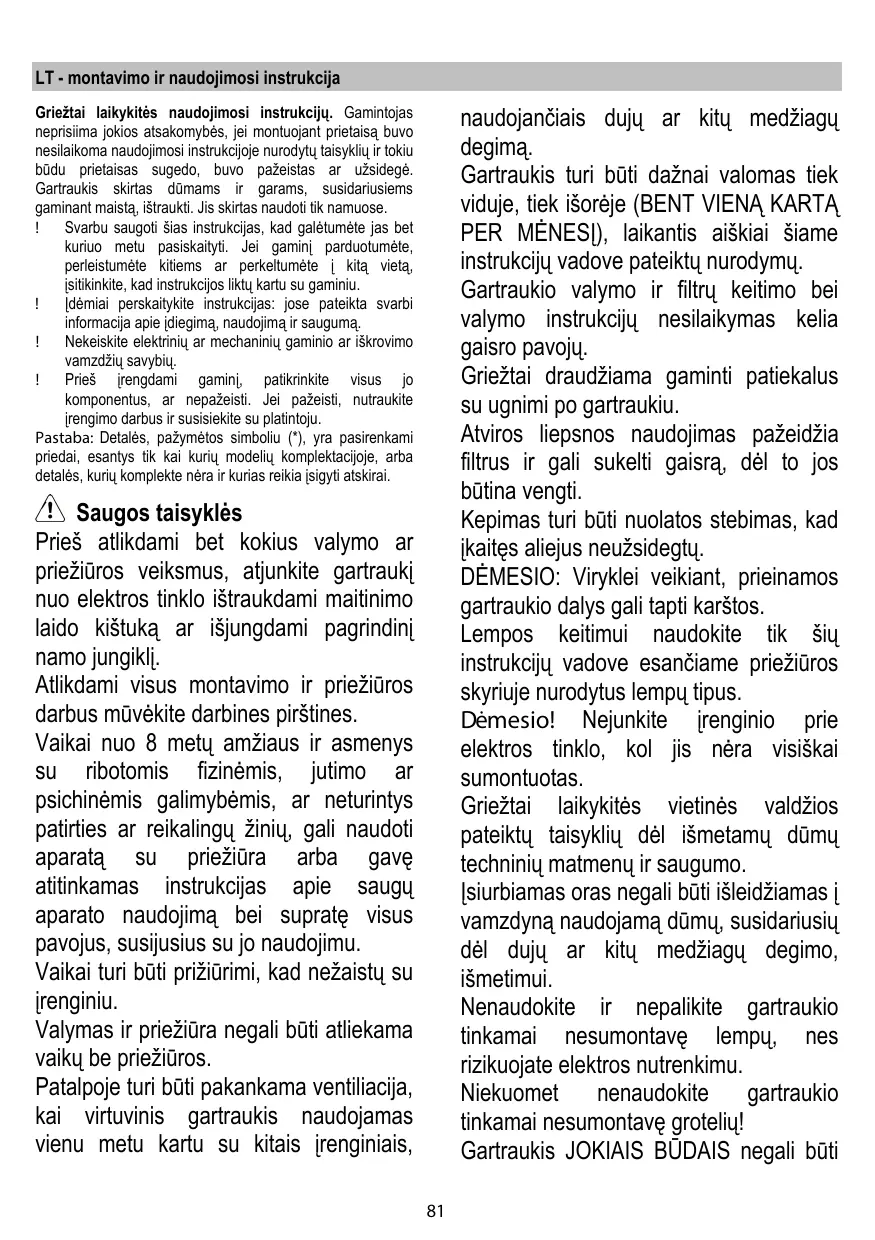 Nous déclinons toute responsabilité à cet égard. Attention! Si la hotte est équipée d'un tre à charbon, ce dernier doit être enlevé.