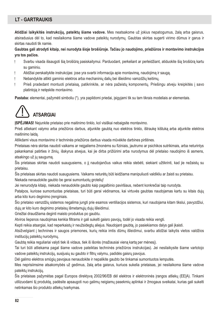 ATTENTION : si vous n'observez pas les recommandations concernant le nettoyage de la hotte et le remplacement des