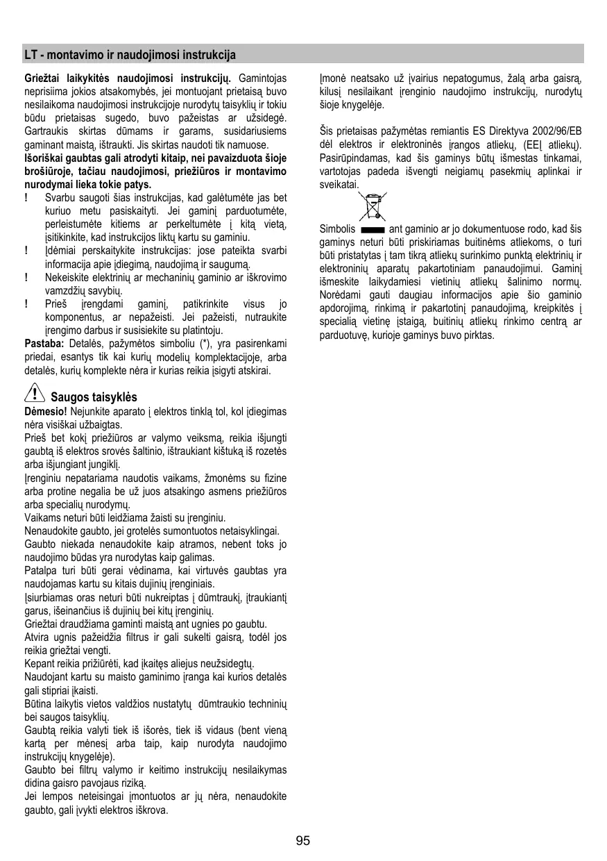 ATTENTION: Il y a risque d’incendie si vous ne respectez pas les instructions concernant le nettoyage de l’appareil et le remplacement ou le nettoyage du filtre. La responsabilité du constructeur ne peut en aucun cas être engagée dans le cas d’un endommagement du moteur ou d’incendie liés à un entretien négligé ou au non respect des consignes de sécurité précédemment mentionnées.