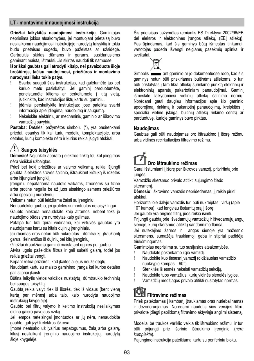 Gaubto bei filtru valmyo ir keitimo instrukcju nesilaikymas didina gaisro pavojaus rizika.