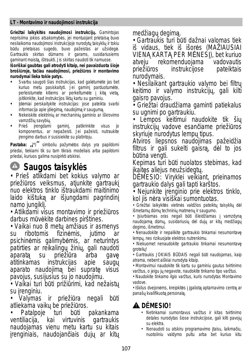 Pour utiliser la hotte dans cette version, vous devez installer un système de filtrage supplémentaire basé sur charbon actif.