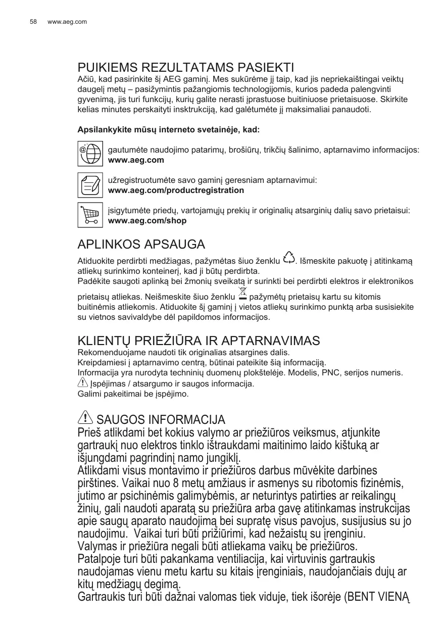 Enregistrer votre produit pour obtenir un meilleur service : www.aeg.com/productregistration Acheter des accessoires, consommables et pièces de rechange d’origine pour votre appareil : www.aeg.com/shop