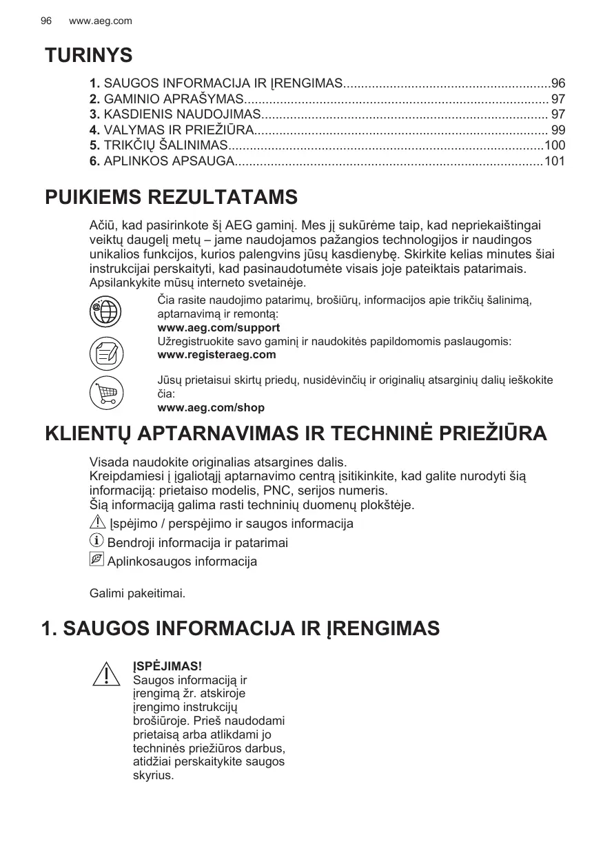 Enregistrer votre produit pour un meilleur service : www.registeraeg.com Acheter des accessoires, consommables et pièces de rechange d’origine pour votre appareil : www.aeg.com/shop