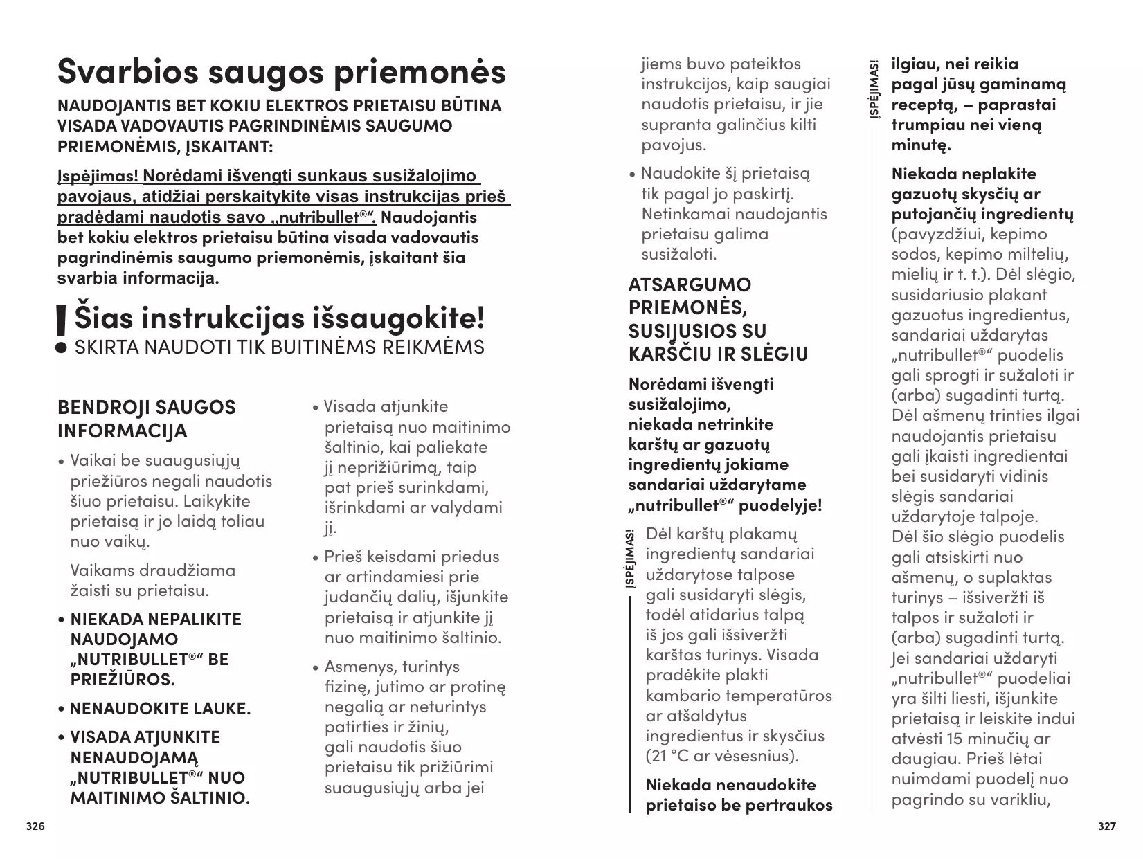 Avertissement ! Pour éviter tout risque de blessure grave, lisez attentivement toutes les instructions avant d’utiliser votre nutribullet®. Lors de l’utilisation de tout appareil électrique, des précautions de base doivent toujours être prises, en particulier les informations importantes suivantes.