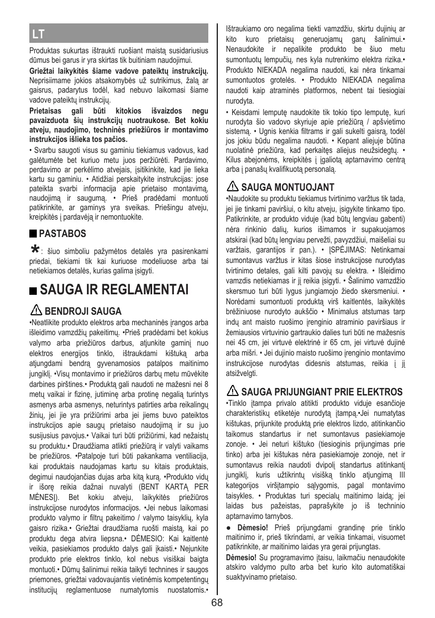 FR Le produit est conçu pour l’aspiration des fumées et des vapeurs de cuisson et est destiné au seul usage domestique.