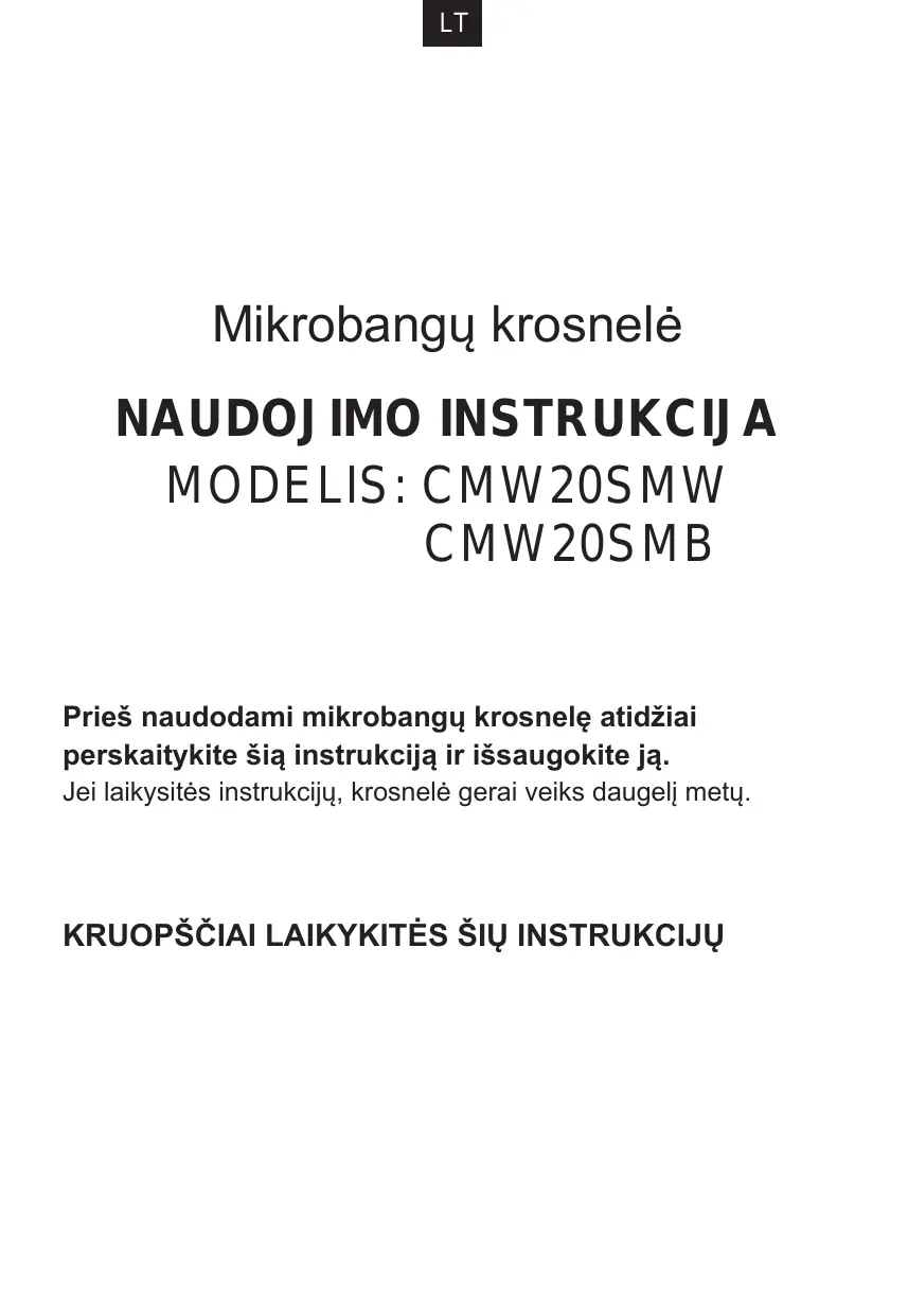 Téléchargez la notice de votre Mikrobangų krosnelės au format PDF gratuitement ! Retrouvez votre notice CMW20SMB - CANDY et reprennez votre appareil électronique en main. Sur cette page sont publiés tous les documents nécessaires à l'utilisation de votre appareil CMW20SMB de la marque CANDY.