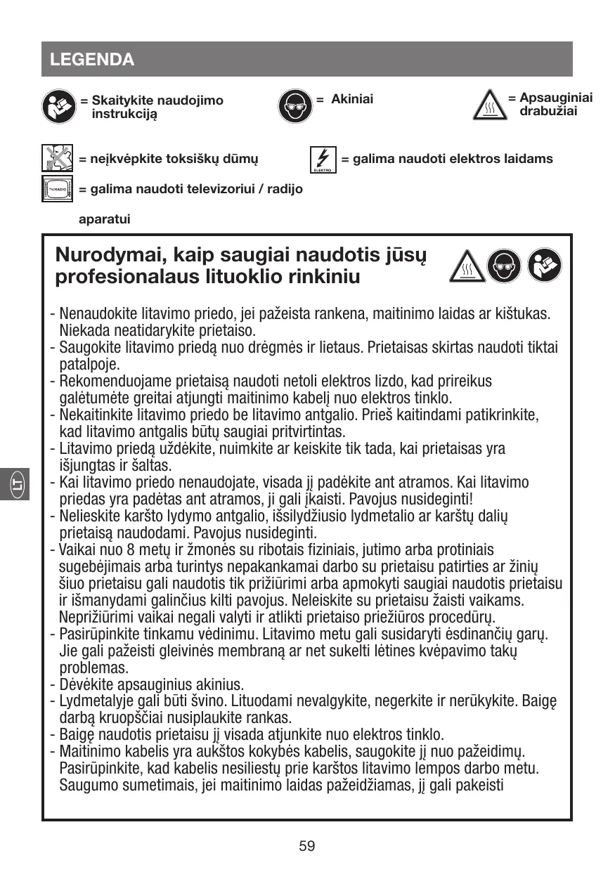 - Lydmetalyje gali büti Svino. Lituodami nevalgykite, negerkite ir nerükykite. Baige darba kruopSiai nusiplaukite rankas.
