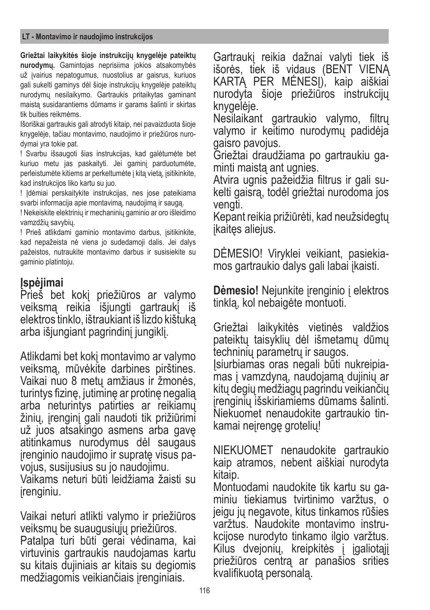 PANDORA IX/F/90 - Virtuvės gartraukis ELICA - Notice d'utilisation et mode d'emploi gratuit