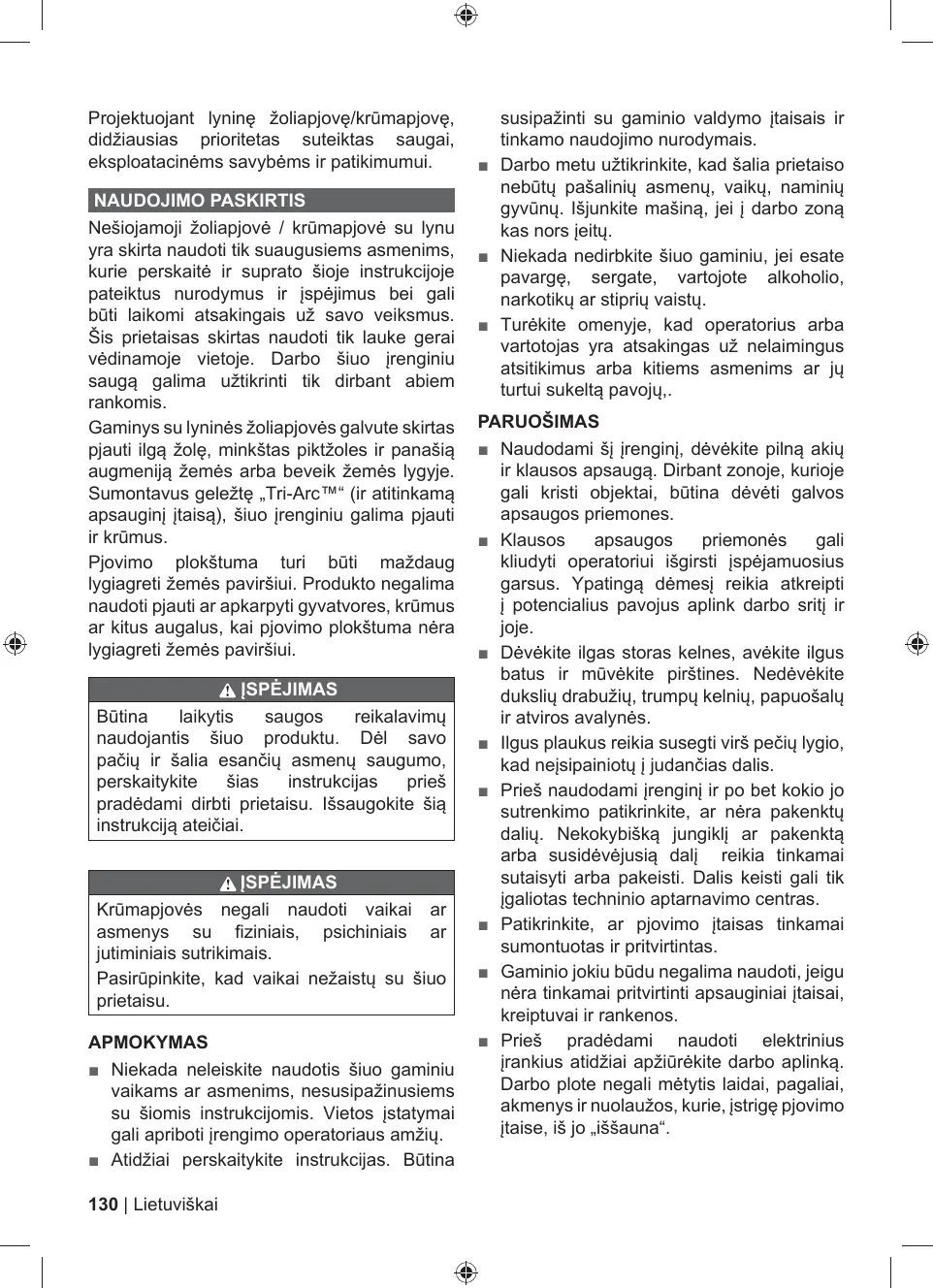 = Gardez à l'esprit que l'opérateur est responsable des accidents qui arrivent aux autres personnes présentes dans sa propriété.