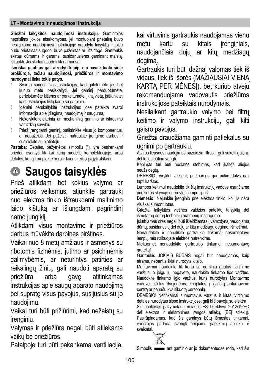 La hotte ne doit JAMAIS être uillsée comme une surface d'appui, sauf indication expresse.