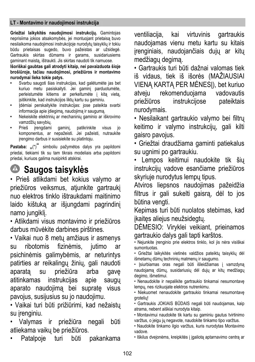+ La hotte ne doit JAMAIS être utilisée comme une surface d'appui, sauf indication expresse.