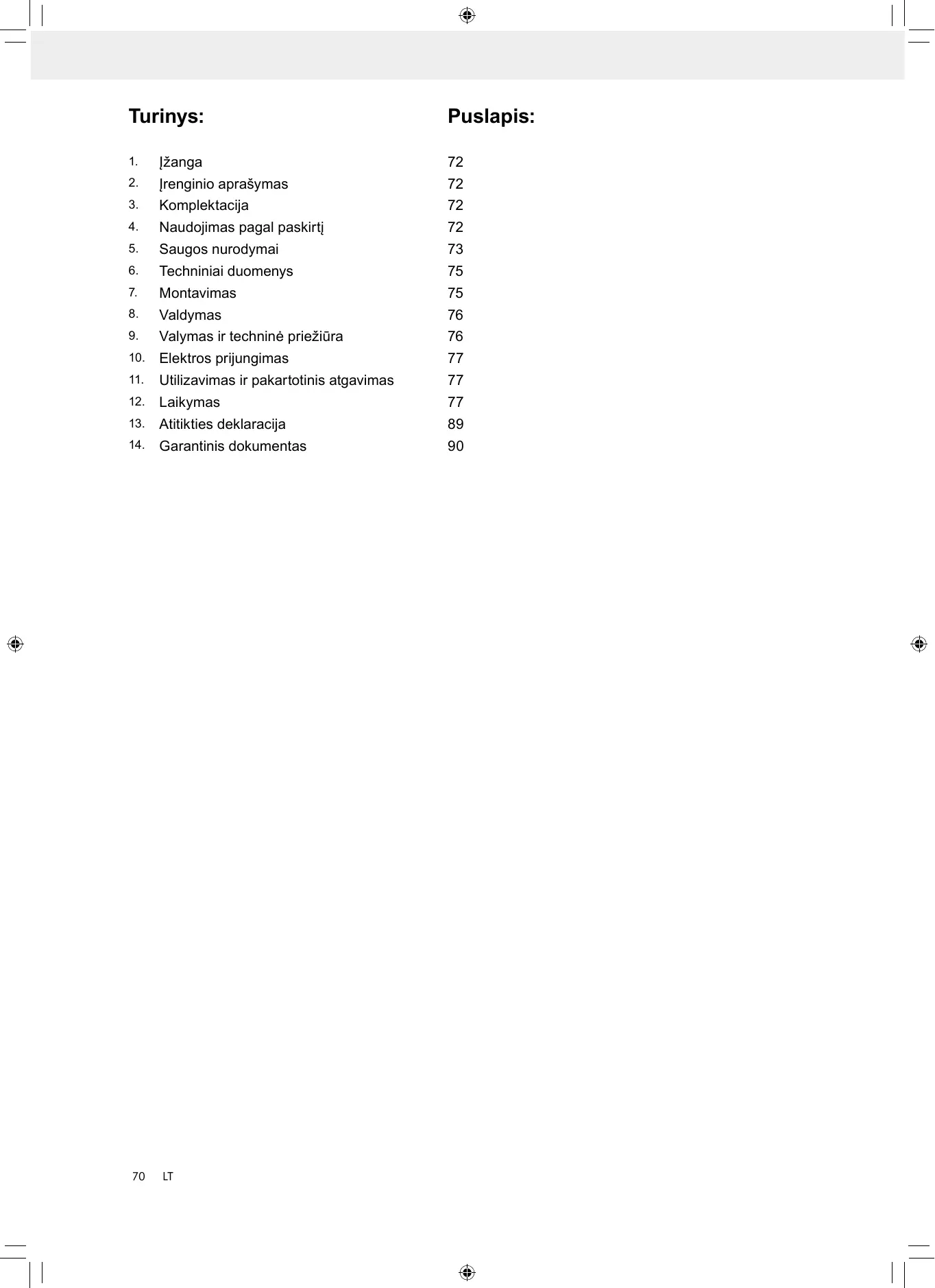 Non gettare le apparecchiature elettriche tra i riflti domestici! 13. Déclaration de conformité 89 14 Acte de garantie 90