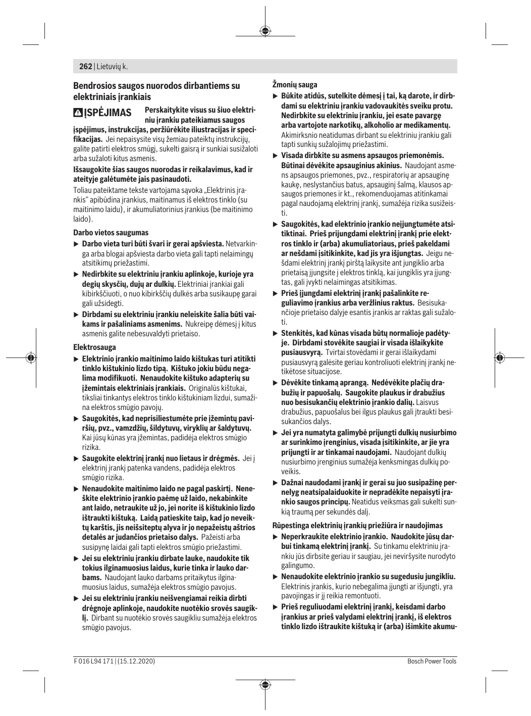 Utiliser l'outil électrique, les accessoires et les lames etc., conformément à ces instructions, en tenant compte des conditions de travail et du travail à réali- ser. L'utilisation de l'outil électrique pour des opérations différentes de celles prévues peut donner lieu à des situa- tions dangereuses.