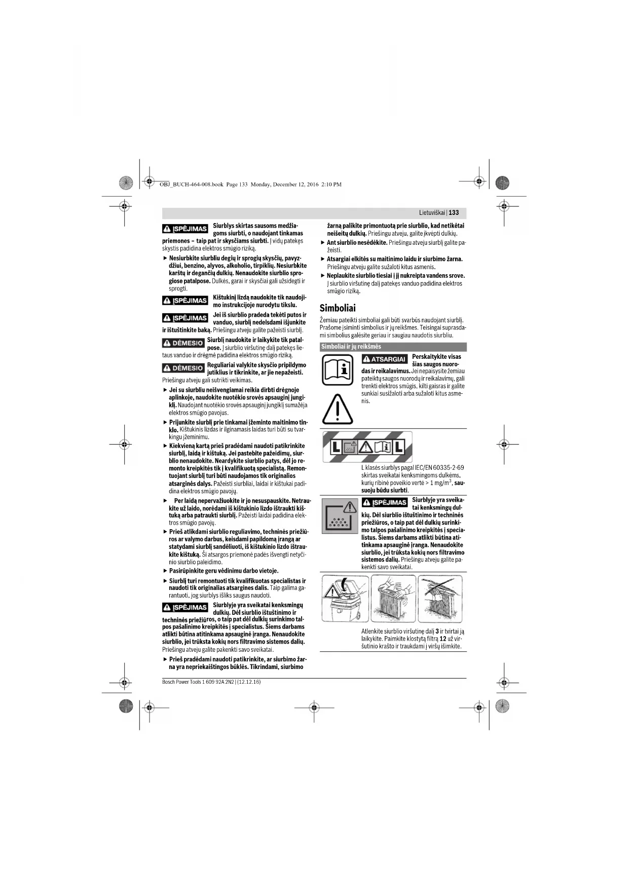mažėja netinkamo naudojimo ir sužalojimų tikimybė. OBJ_BUCH-464-008.book Page 132 Monday, December 12, 2016 2:10 PMLietuviškai | 133