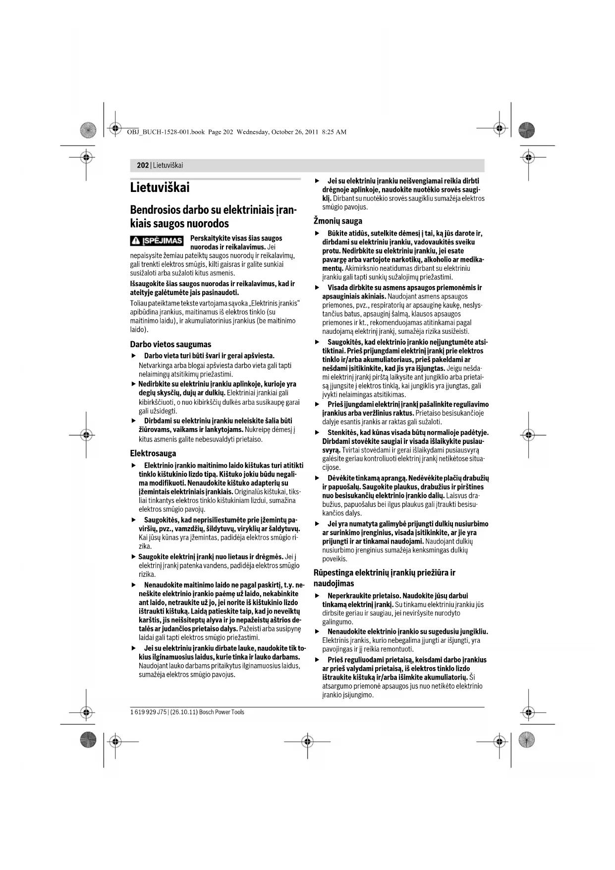 OBJ_BUCH-1528-001.book Page 201 Wednesday, October 26, 2011 8:25 AM202 | Lietuviškai 1 619 929 J75 | (26.10.11) Bosch Power Tools Lietuviškai