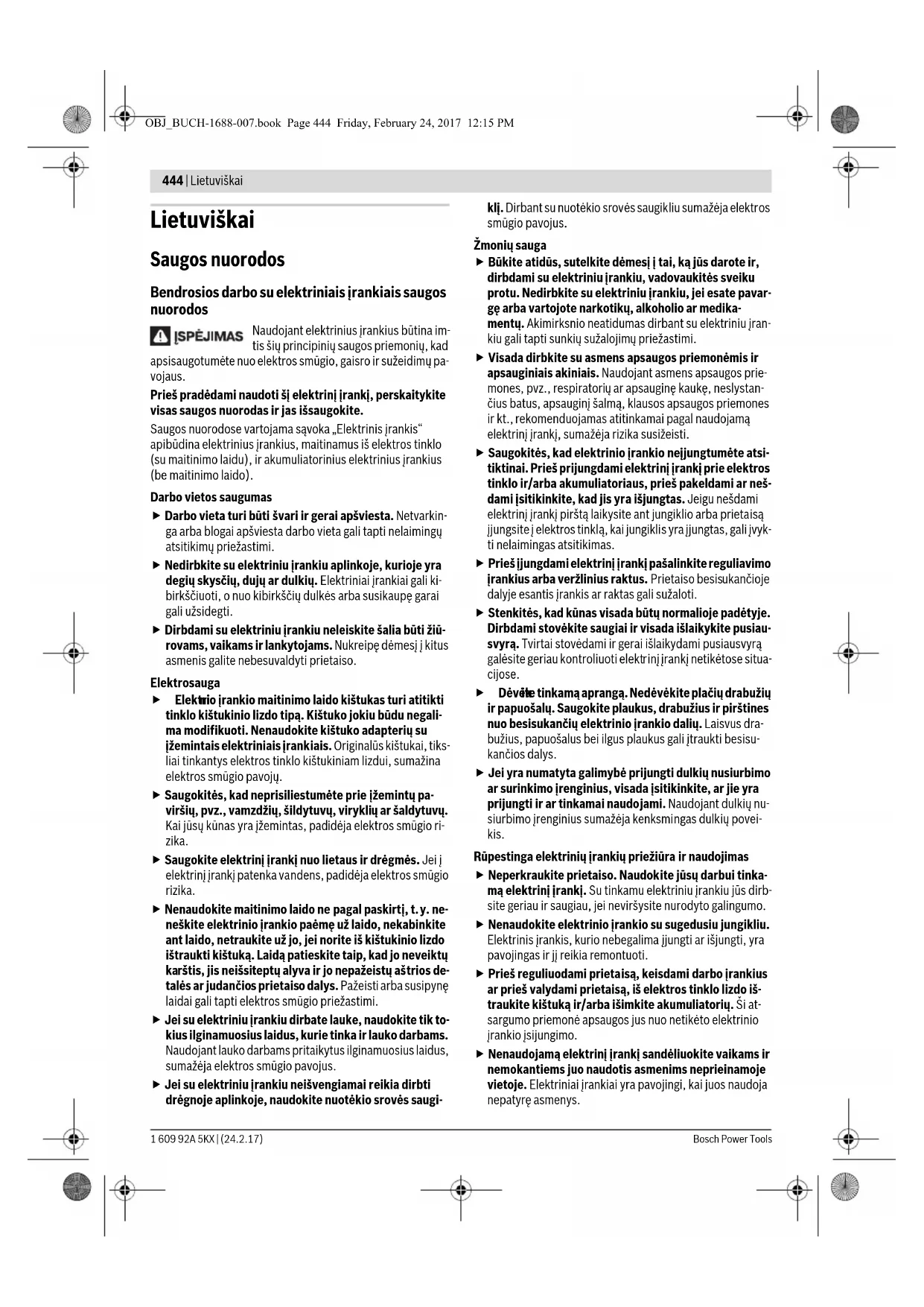 OBJ_BUCH-1688-007.book Page 456 Friday, February 24, 2017 12:15 PMLietuviškai | 457 Bosch Power Tools1 609 92A 5KX | (24.2.17) Patikrinimas: (žr. pav. I1)
