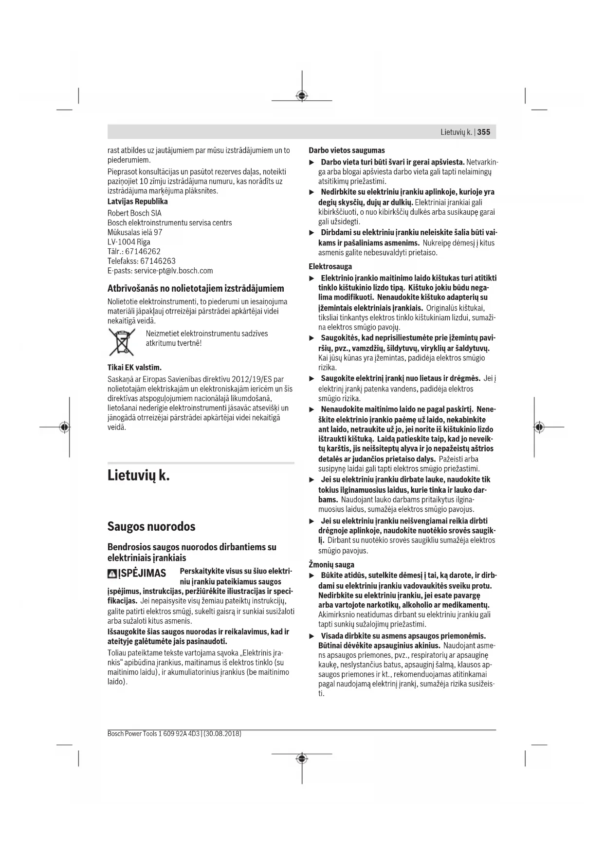 Lietuvių k. | 355 Bosch Power Tools 1 609 92A 4D3 | (30.08.2018)356 | Lietuvių k.