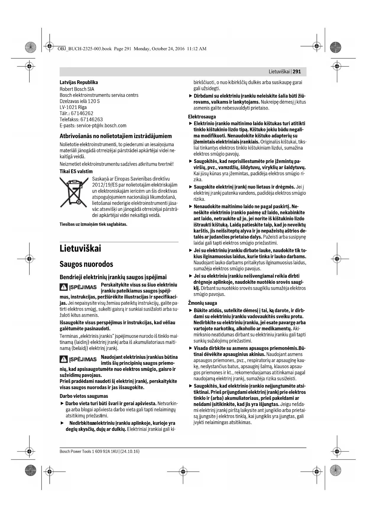 OBJ_BUCH-2325-003.book Page 299 Monday, October 24, 2016 11:12 AM300 | Lietuviškai 1 609 92A 1KU | (24.10.16) Bosch Power Tools Transportavimas (žr. pav. S)