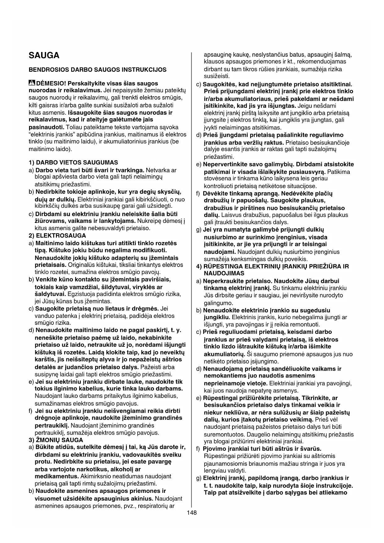SAUGA BENDROSIOS DARBO SAUGOS INSTRUKCIJOS DĖMESIO! Perskaitykite visas šias saugos
