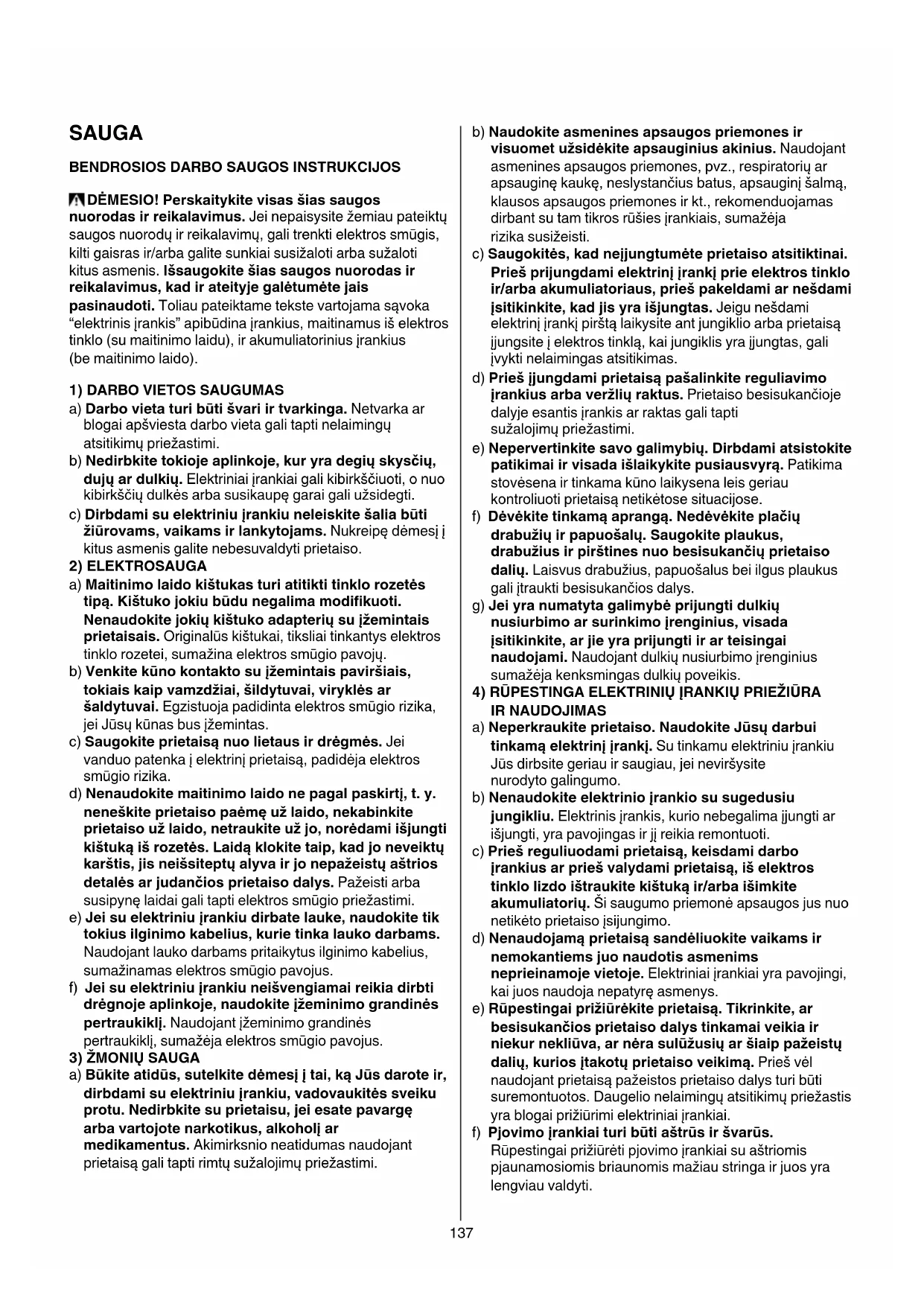 SAUGA BENDROSIOS DARBO SAUGOS INSTRUKCIJOS DĖMESIO! Perskaitykite visas šias saugos
