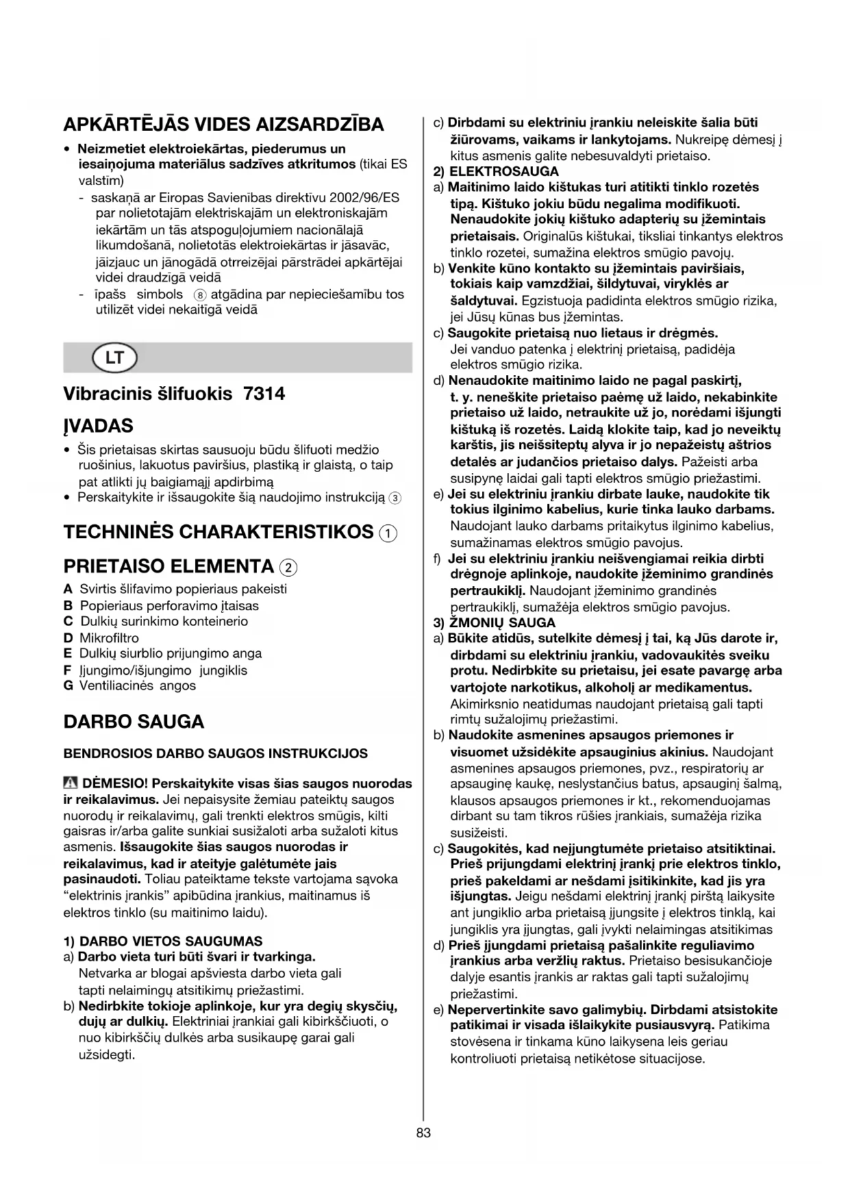 DARBO SAUGA BENDROSIOS DARBO SAUGOS INSTRUKCIJOS DĖMESIO! Perskaitykite visas šias saugos nuorodas