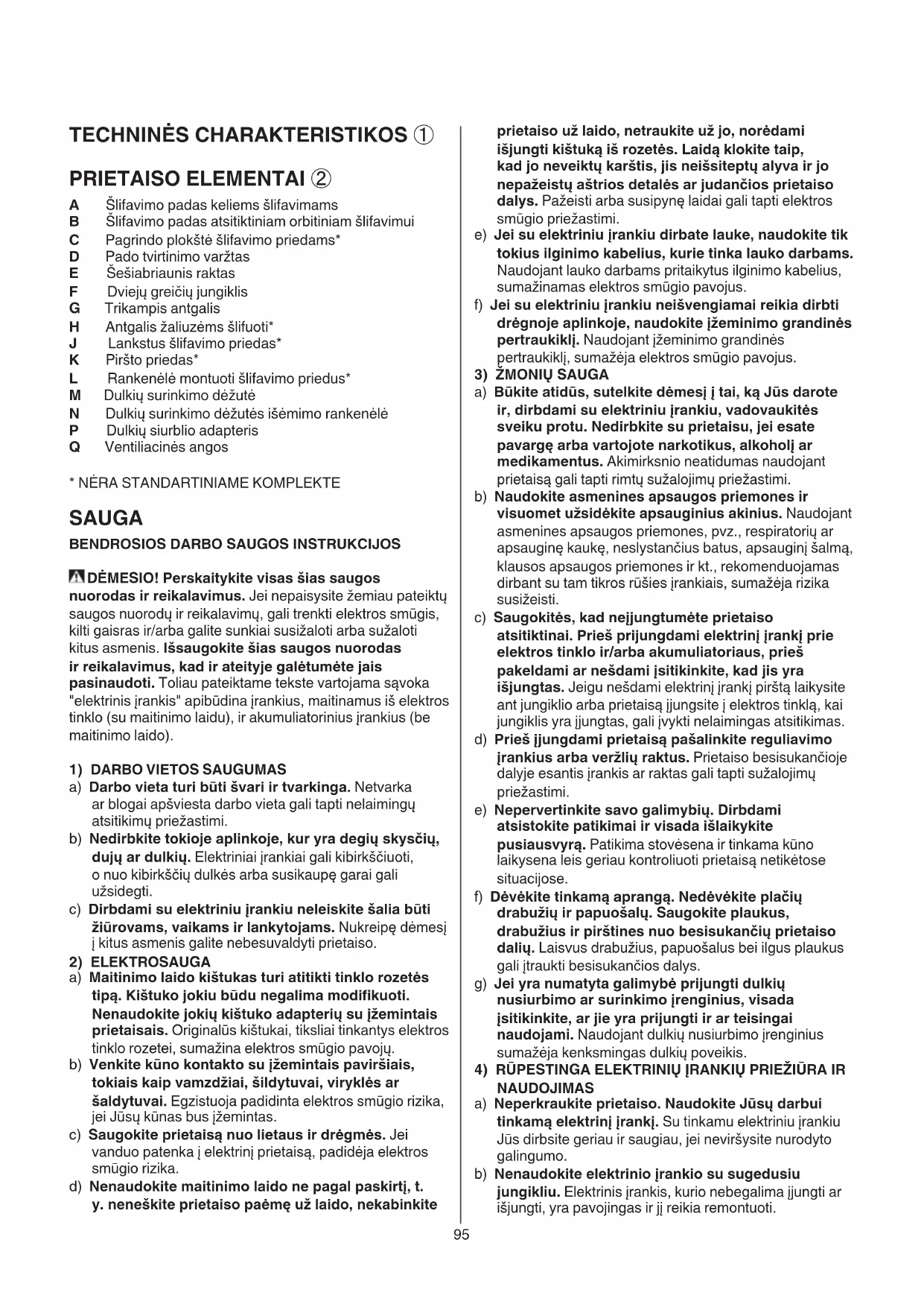 * NĖRA STANDARTINIAME KOMPLEKTE SAUGA BENDROSIOS DARBO SAUGOS INSTRUKCIJOS DĖMESIO!Perskaitykitevisasšiassaugos