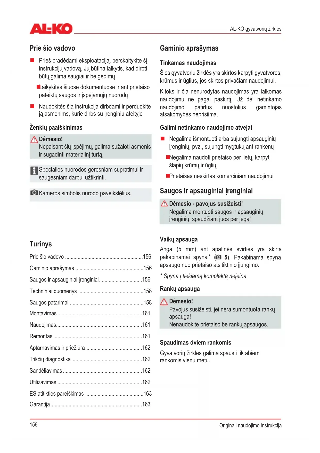 AL-KO gyvatvorių žirklės Prie šio vadovo Prieš pradėdami eksploataciją, perskaitykite šį instrukcijų vadovą. Jų būtina laikytis, kad dirbti būtų galima saugiai ir be gedimų Laikykitės šiuose dokumentuose ir ant prietaiso