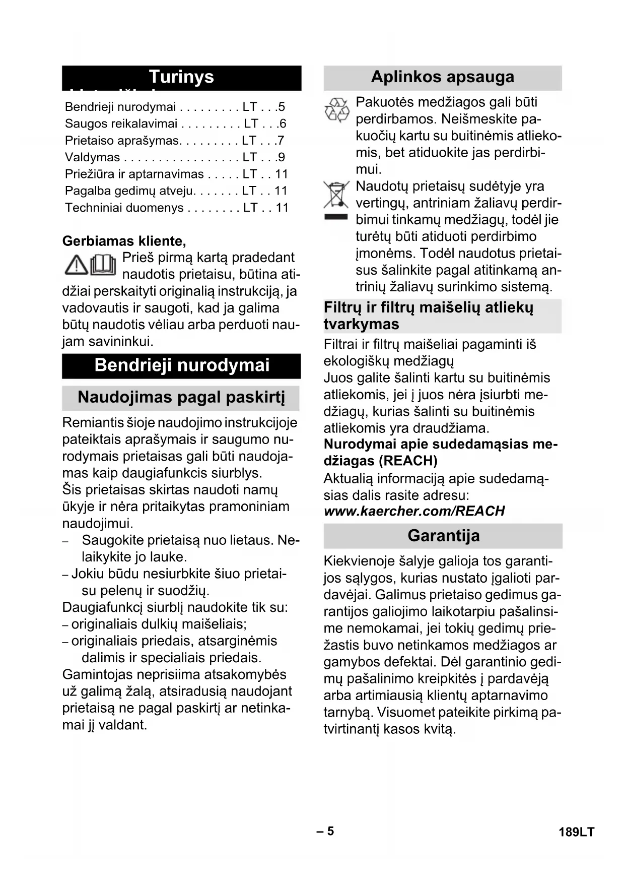 pardavėjo arba Jūsų KÄRCHER filiale. – Šis prietaisas nepritaikytas naudoti asmenims su fizine,