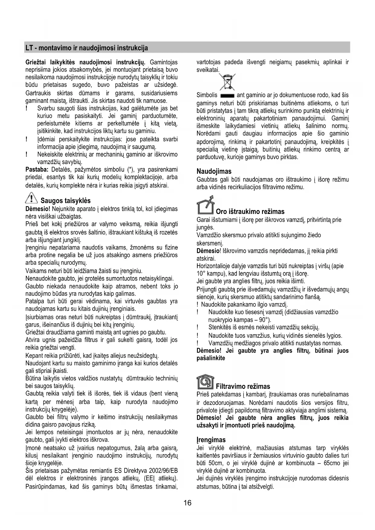 įsitikinkite, kad instrukcijos liktų kartu su gaminiu.